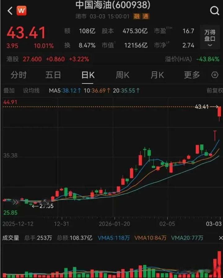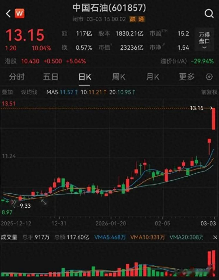 中东开战以来两个交易日,三桶油连续两个涨停,但都是放量涨停,而且。